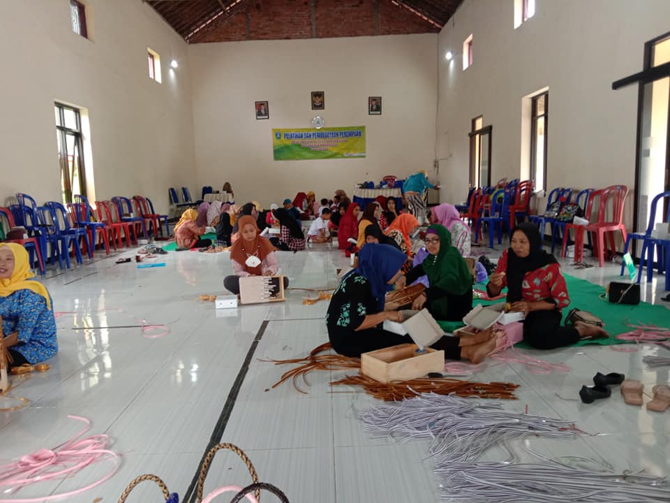 Pelatihan Pemberdayaan Perempuan dalam Membuat Tas Anyam Bersama Azbiya Galery dan OK OCE INA MAKMUR PONOROGO di Desa Mrayan Ngrayun